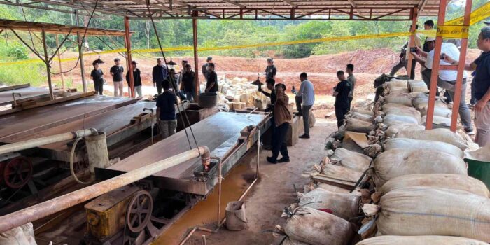 Bangka Belitung – Direktorat Tindak Pidana Tertentu (Dittipidter) Bareskrim Polri bersama Polda Bangka Belitung menggerebek lokasi pengelolaan pasir timah ilegal di wilayah