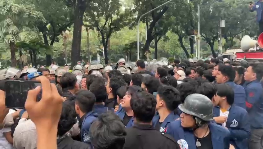 Aksi unjuk rasa sekelompok mahasiswa di Balai Kota DKI Jakarta terjadi kemarin, Rabu (21/5). Unjuk rasa ini pun sempat menimbulkan kericuhan hingga akhirnya polisi menangkap sebanyak 93 orang peserta aksi.