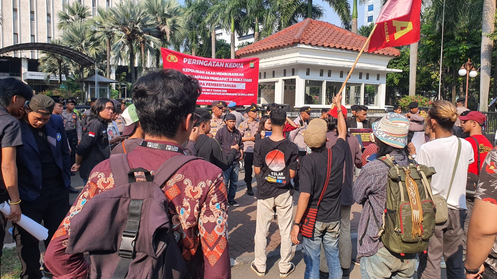 Ia menambahkan bahwa petugas kepolisian di lapangan telah memberikan imbauan langsung kepada massa serta membentangkan spanduk peringatan sesuai prosedur.