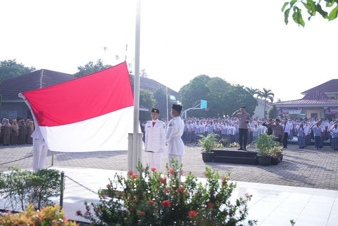 Serang – Polda Banten menggelar program “Polisi Peduli Pendidikan” dengan mengerahkan seluruh Pejabat Utama (PJU) untuk menjadi Inspektur Upacara (Irup) di sekolah-sekolah menengah atas dan sederajat di seluruh wilayah Banten pada Senin, 8 September 2025. Kegiatan ini dipimpin langsung oleh Kapolda Banten Brigjen Pol. Dr. Hengki, S.I.K., M.H. yang bertindak sebagai Irup di SMA Negeri 2 Kota Serang, sementara Wakapolda Banten Kombes Pol. Dr. Hendra Wirawan, S.H., S.I.K., M.H. menjadi Irup di SMA Negeri 1 Kota Serang dan seluruh PJU Polda Banten secara serentak menjadi Irup di sekolah-sekolah lainnya.